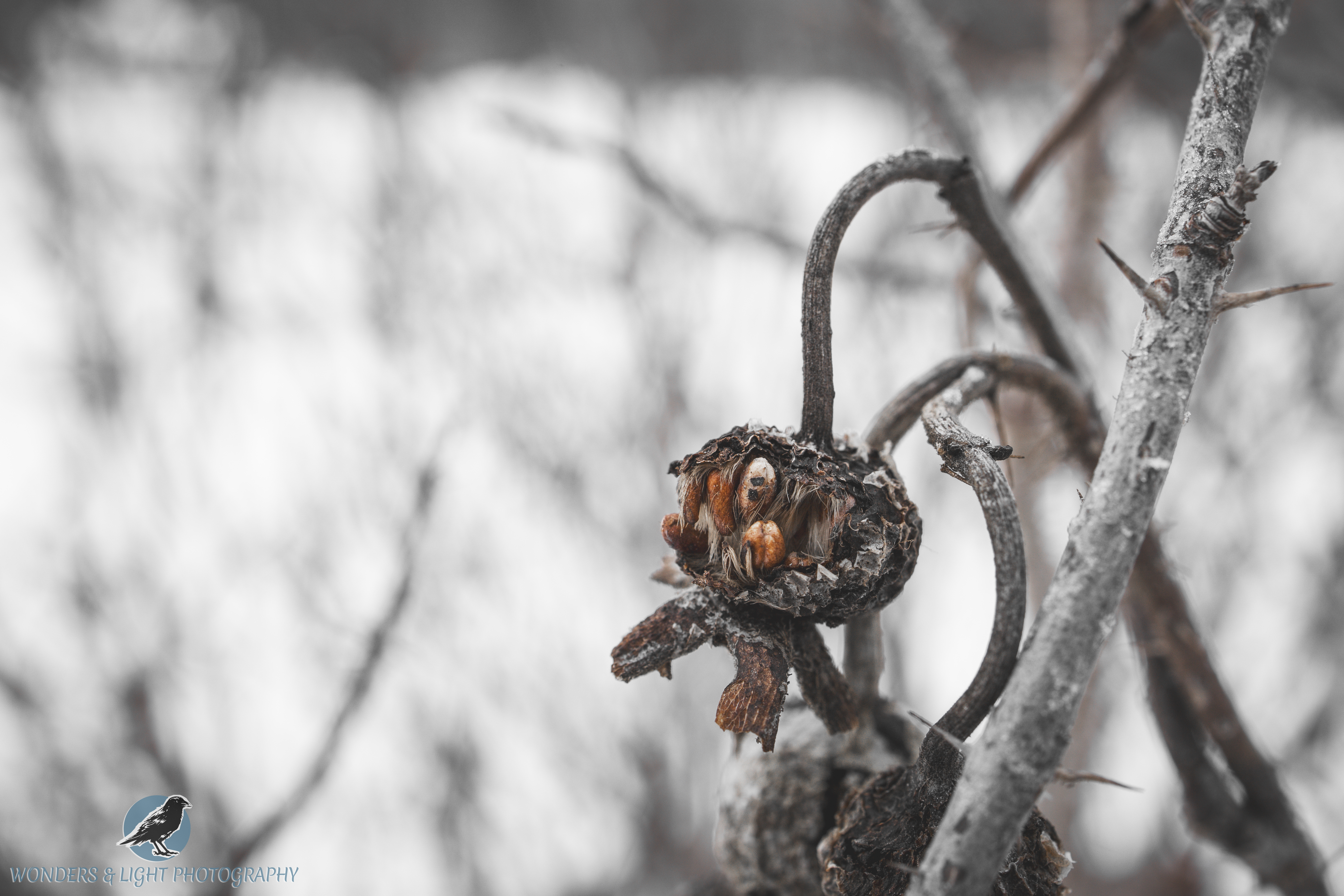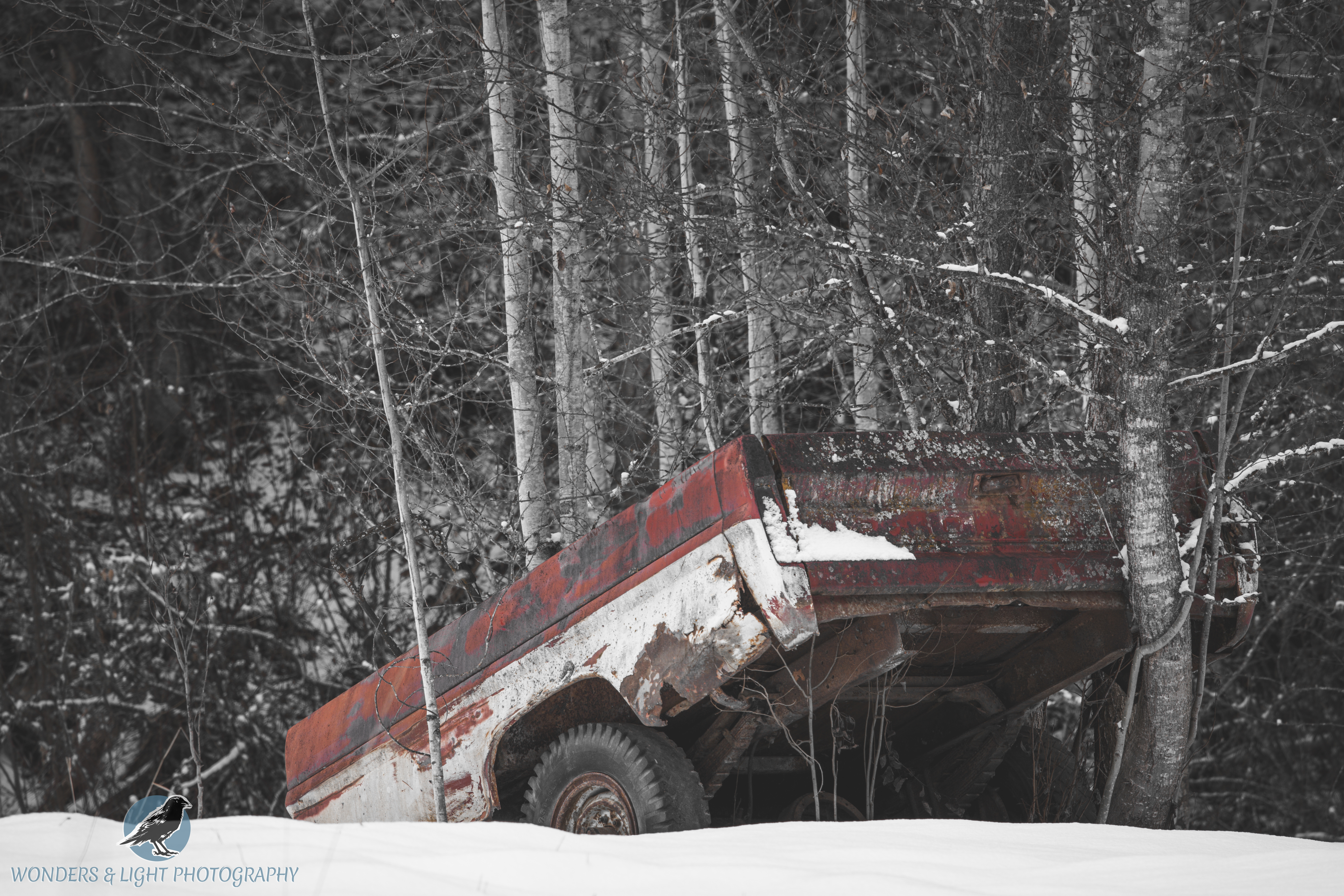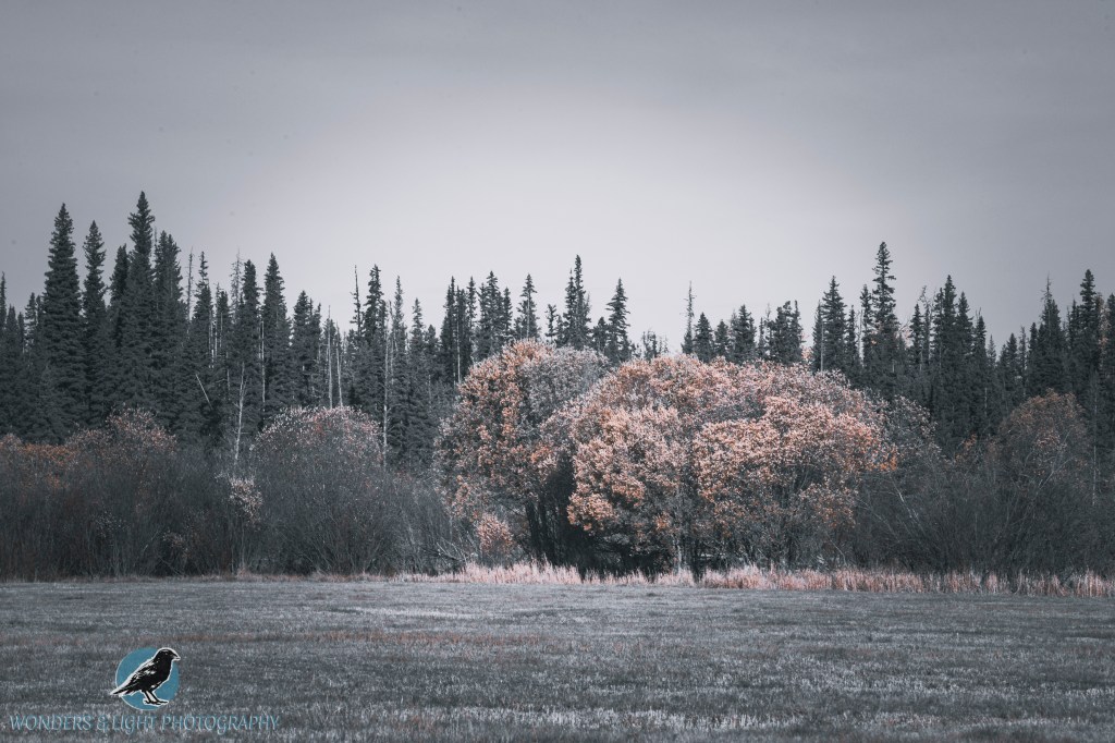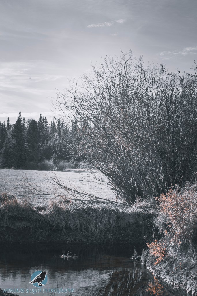 I have been ignoring my website and haven’t really gotten into the blog thing, but I have seven days off of work and thought I would make a couple posts. After a recent upgrade in camera gear I have been thinking of upgrading to a couple different lenes. After ordering and receiving it last week I finally was able to get out and play yesterday. I decided to head to Westfraser Timber Park to see what I could find. Birds were quiet, but the touch of frost, snow and rendments of summer made lovely caputures for the day.