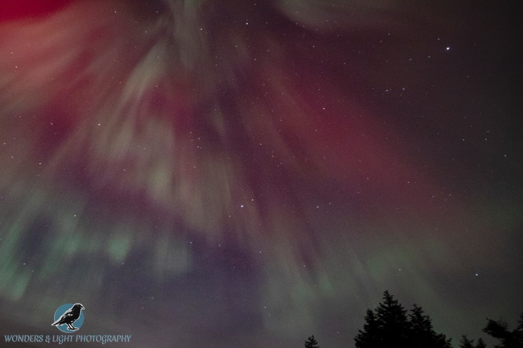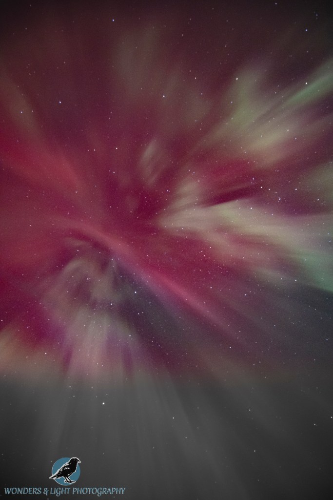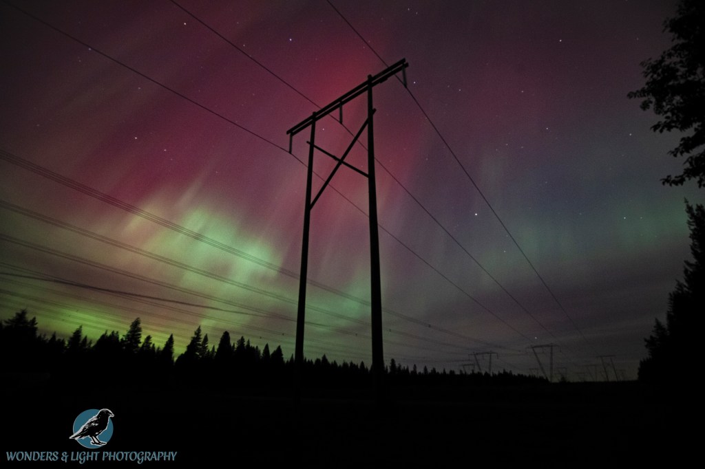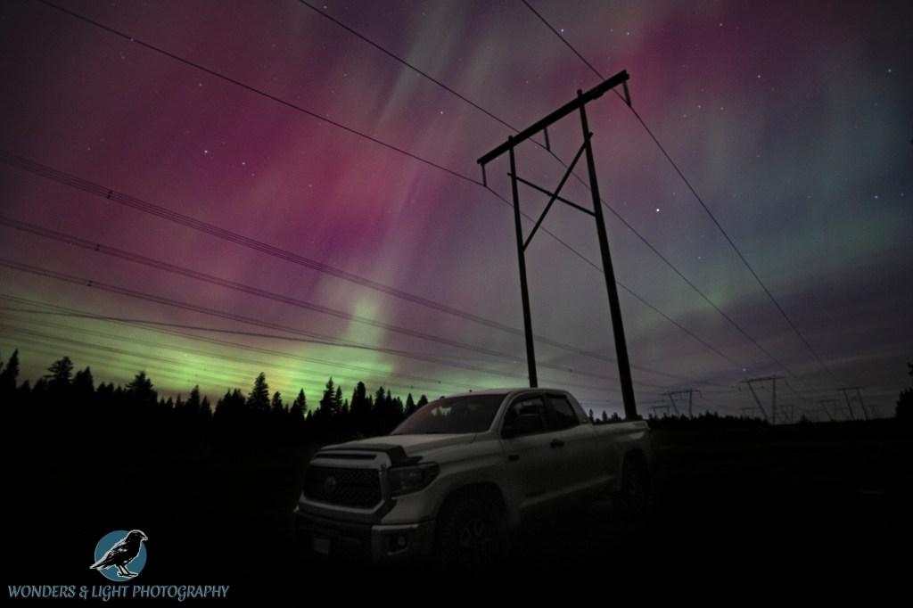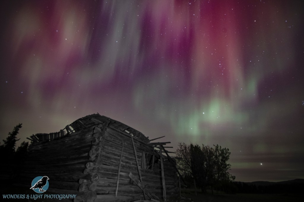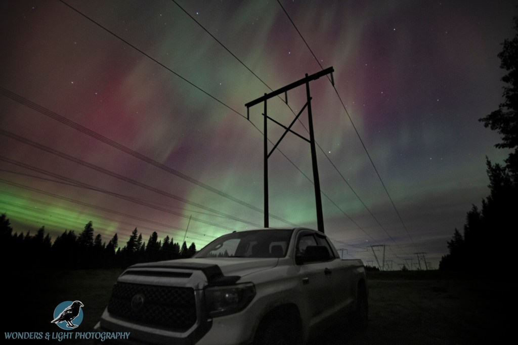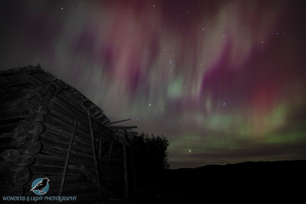 When you get the notification that the northern lights probability is 100%. It was so worth the drive to find a spot to watch the show of dancing lights of colour. It always amazes me how much colour the camera does pick up with only a little editing. I even got to do a little bit of light painting of an old barn.